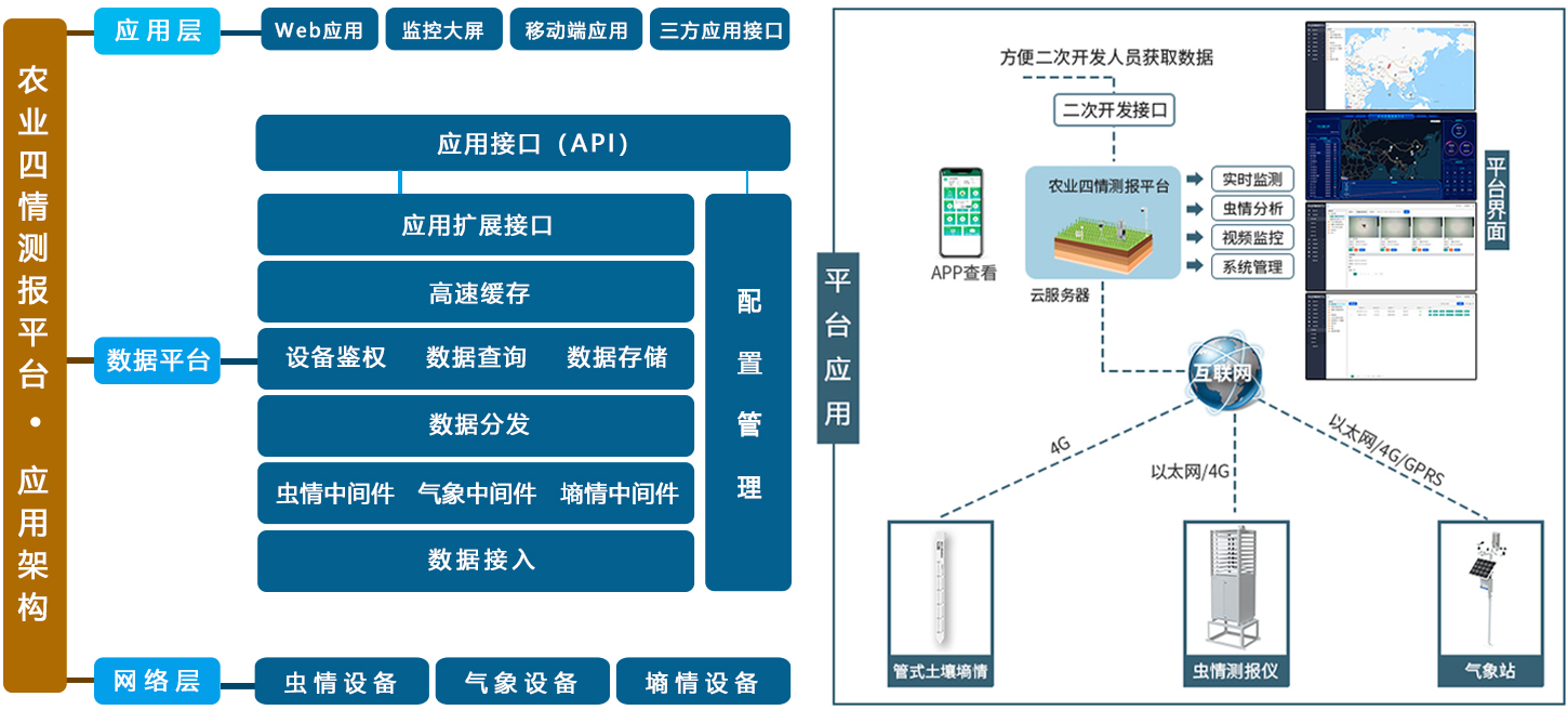 農業四情測報平臺是集蟲情、氣象、墑情監測為一體在線監控平臺。蟲情監測具有Al害蟲自動識別、遠程實時查看蟲情、蟲情在線分析、害蟲種類自動識別、區域蟲情統計、蟲情變化趨勢分析、設備監測等功能。氣象監測具有遠程實時查看氣象、在線分析氣象歷史數據的功能。墑情監測具有遠程獲取土壤墑情(如土壤溫濕度、水分、PH)、在線分析土壤墑情歷史數據的功能。為實現農業現代化、先進化提供科技支持,為解放和發展生產力提供技術保障。
