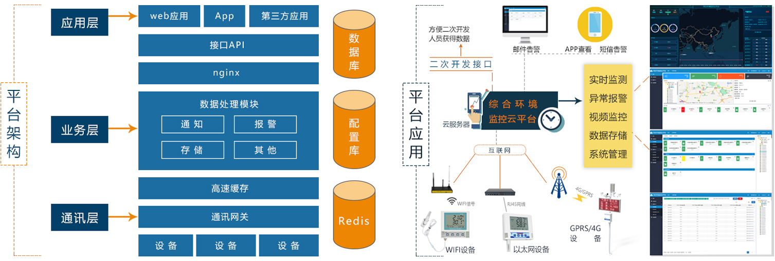 綜合環境監控云平臺是我司旨在為用戶提供最便捷的服務而專門開發的網頁登錄平臺,在原有平臺的基礎上,界面更加美觀且人性化。部署于公網服務器,可方便的接入我司所有網絡型設備。客戶無需再自行架設服務器,省去了服務器的維護費用,無需具備公網IP或者域名解析服務。設備到現場后用戶無需再進行復雜的網絡設置,便可連接到云平臺,極大的節省了現場施工的時間。公司承諾平臺永久免費,界面完全中性,支持多級權限訪問、客戶增添子賬號等功能。客戶可憑賬號隨時隨地登錄,方便的查看自己的設備狀態、查詢數據記錄、下載打印數據等,還可以根據需要選擇短信報警、郵件報警、電話報警、微信報警等服務,平臺穩定可靠,功能強大。