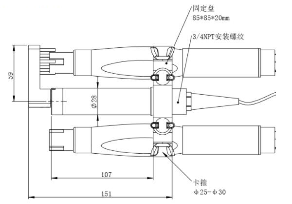 清洗支架上端設計有3/4NPT螺紋,可以方便固定安裝。