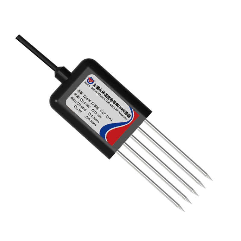 該變送器可同時監測土壤含水率、電導率、溫度以及PH值等參數,完全密封,耐酸堿腐蝕,可埋入土壤或直接投入水中進行長期動態檢測。
