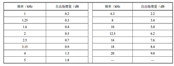 通過聲校準器產生的聲壓響應或用靜電激勵器產生的模擬聲壓響應,可通過下表的調整數據得到等效的自由場響應。![]() |