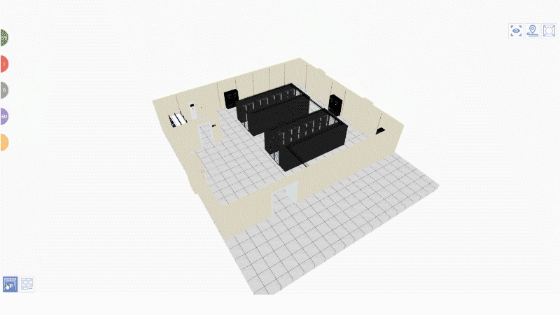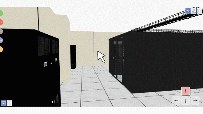 通過鼠標配合鍵盤上下左右按鍵操作,巡檢人員可以以第一人稱視角在模擬場景中自由“行走”,視角可以實現360度旋轉,支持多角度切換,讓巡檢人員能夠真實形象地感知機房場景。