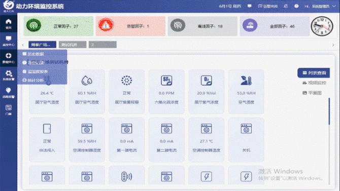用戶可以通過機房動力環境監控系統平臺以平面圖/列表/視頻監控的方式查看各設備監測到的數據,包括但不限于溫/濕度監測、漏水監測、非法入侵監測、煙霧監測、空氣質量監測、光照監測、六氟化硫監測等。