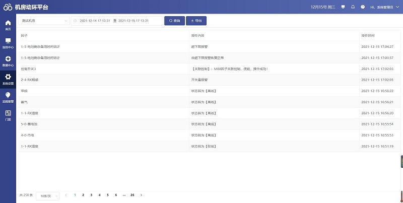 也可以對所有監測因子的狀態進行統計,包括正常、告警、離線、全部。在統計詳情中點擊具體的因子,會快速鎖定到此因子所在設備查看詳細情況,比如:一旦發現機房內存在告警因子,點擊該因子可直達相應的場景,自動切換到報警設備的最佳視角,并彈出設備的參數狀態窗口,以便巡檢人員迅速處理;還會對告警通知進行記錄,方便隨時查看和追溯。