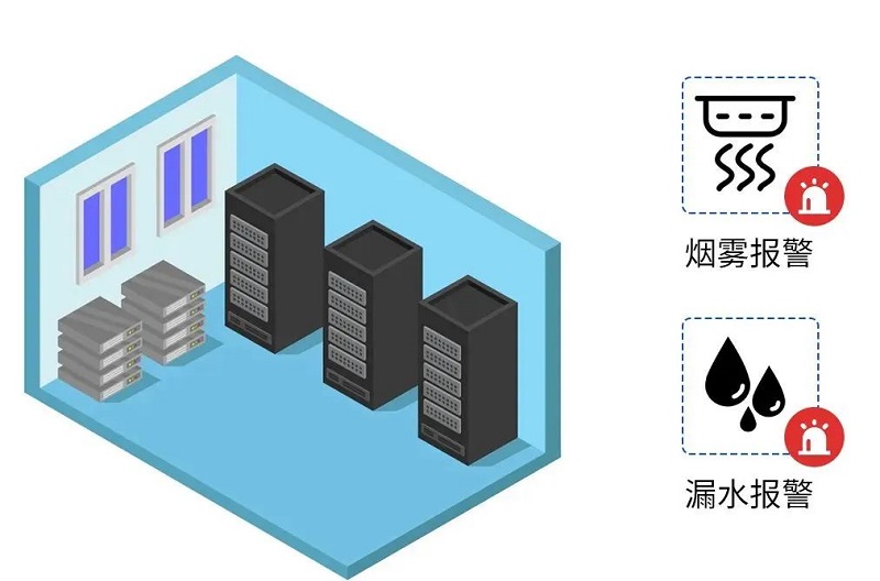 管道老化/破損、空調系統故障、發電機泄露等情況都會引起機房漏水,威脅設備安全;線路短路、過載、接觸電阻過大、設備故障等因素都會產生煙霧,若不及時處理便會導致機房火災,用戶可以在機房各處安裝水浸變送器、煙霧變送器,時刻監測機房環境,以便及時發現及時處理。