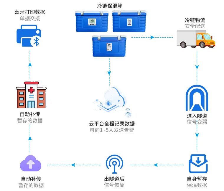 保溫箱溫濕度監測系統是 由溫濕度記錄儀、冷鏈保溫箱和4G環境監控云平臺共同組成,溫濕度記錄儀能夠實時監測箱內溫濕度,并將數據以4G方式上傳至環境監控云平臺,實現精準監測與遠程管理。