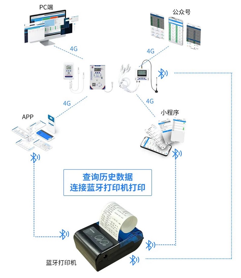 由于冷鏈物流運輸在到達目的地時,經常需要打印數據小票進行交接。為了讓用戶交接方便,我們還為設備加入了藍牙打印功能。