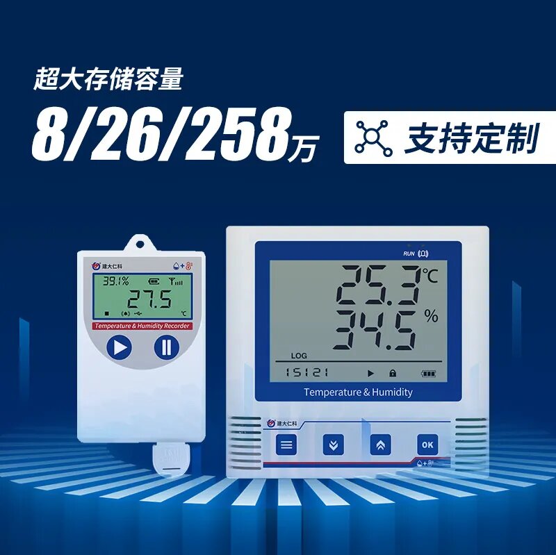 設備擁有超大存儲空間,可記錄8/26/258萬條溫濕度數據,支持定制,用戶不用擔心容量問題。