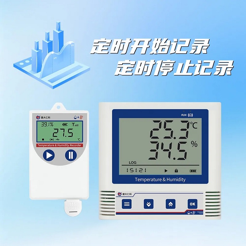 設備具有定時開始記錄、定時停止記錄功能,由此一來,當采用多臺記錄儀進行記錄時,可確保設備同時開啟記錄,同時停止,提升了設備的靈活性,可有效節省用戶時間,降低設備不必要能耗的同時,將溫濕度變化完整的記錄下來。