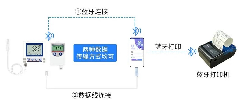 設備支持手機APP/小程序查看全過程溫濕度數據,并通過連接藍牙打印機進行打印,也支持設備直接連接藍牙打印機進行打印,并且,溫濕度記錄儀數據存儲不可篡改,可幫助用戶輕松應對監管人員審查,避免錯查、誤查情況發生。