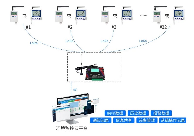 針對這些問題,山東仁科推出了LORA無線主機+四個測點+環境監控云平臺的監測方式。