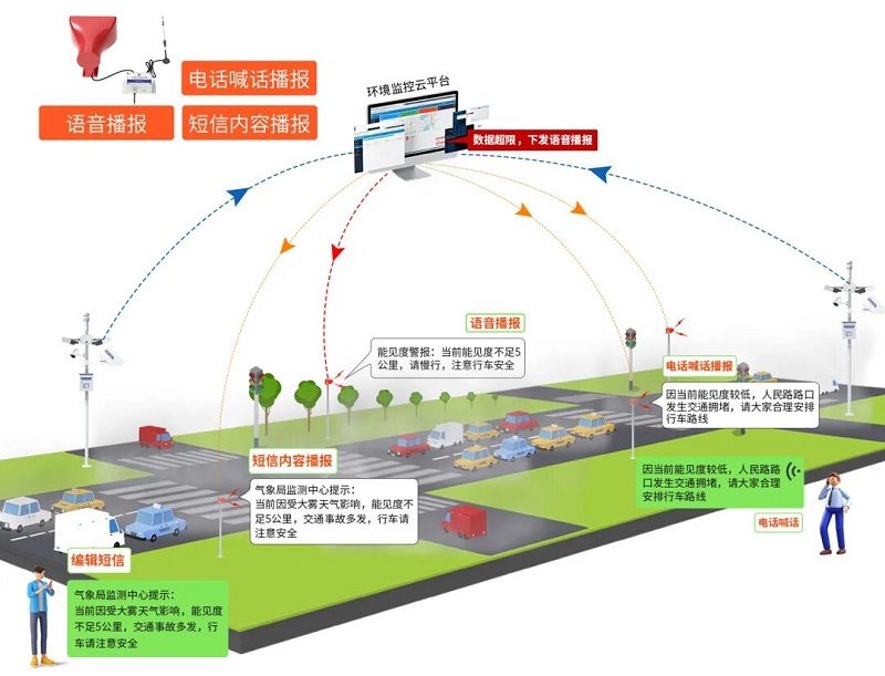 當遇到能見度過低、路面濕滑、降雨等情況時,云平臺還會根據公路交通氣象站監測到的信息,自動推送限速提示至道路兩邊電子路牌、廣播等方式,引導駕駛員規避風險路段。