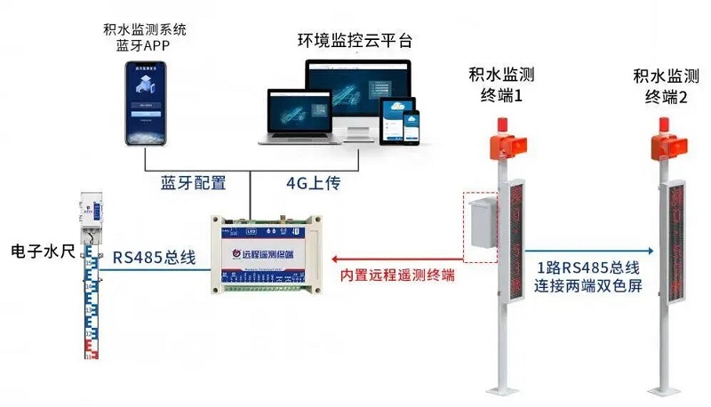 為了更好地監測道路積水,山東仁科推出了電子水尺和地埋式積水測點,搭配遠程遙測終端RTU、語音播報模塊、光報警模塊、LED顯示屏等可以組成積水監測站,能夠實時監測積水情況,并將監測到的水位值遠程傳輸到云平臺,同時實時顯示在現場 LED 屏上,水位超限會觸發號筒揚聲器和光報警器雙重報警,可實現秒級響應,較傳統人工上報效率提升90%以上,滿足了市政部門對“黃金救援時間”的剛性需求,為城市排水防澇工作提供有力的支持,提高了城市的防災減災能力。