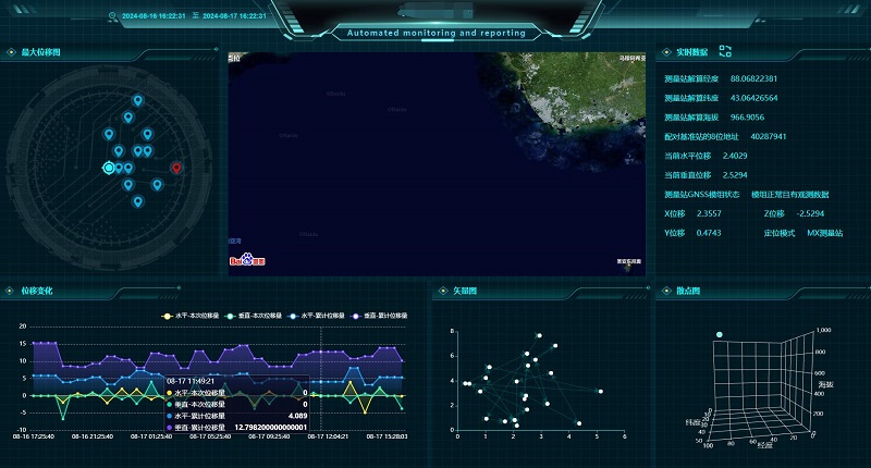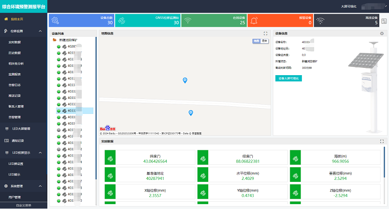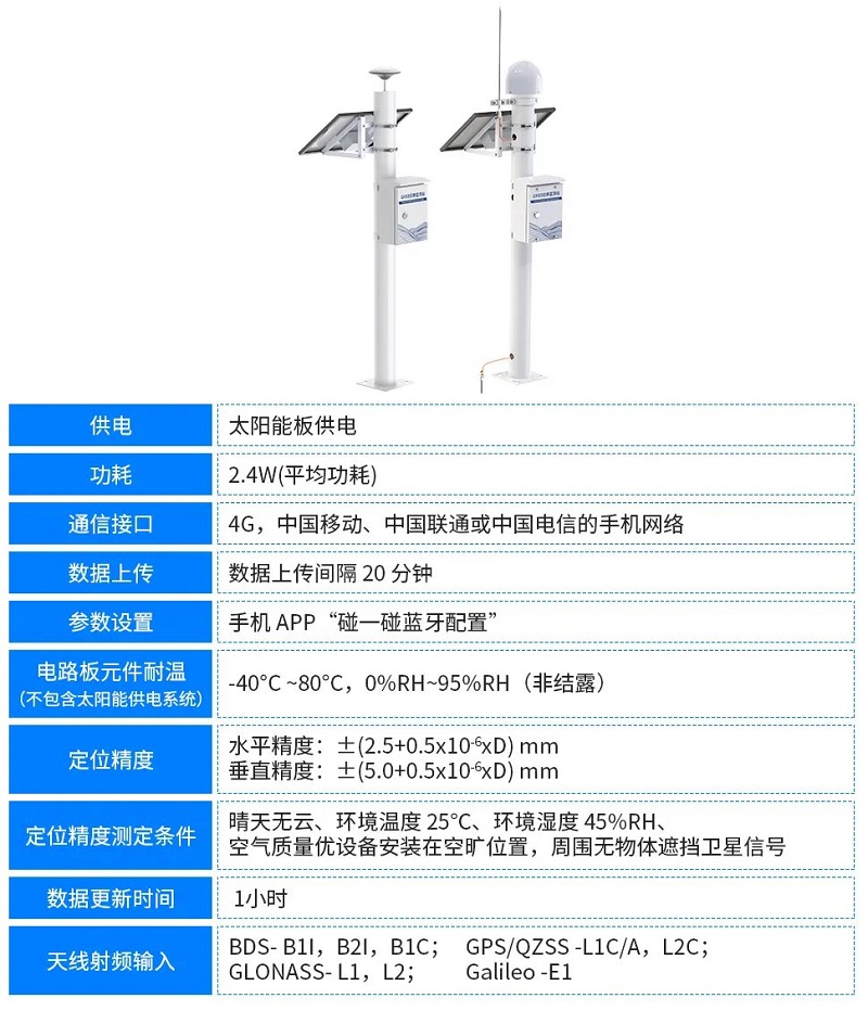搭配我公司自主研發設計的GNSS監測云平臺,用戶還可以在平臺上查看紅橙黃藍四級預警,曲線圖、矢量圖、散點圖分析,導出監測報表等,完全符合地質災害GNSS位移監測預警精度要求。
