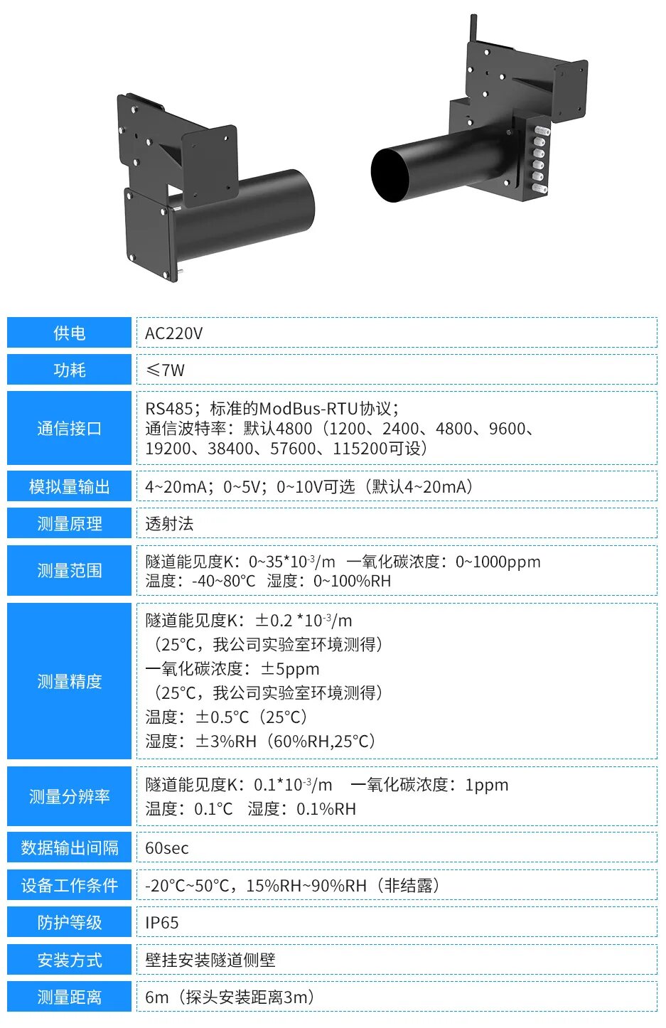 COVI隧道能見度檢測儀采用“多源融合”監測技術,不僅可以監測隧道能見度——一氧化碳濃度(大量程)、衰減系數和透光率,還可以同時檢測溫濕度和二氧化氮(選配)等多項要素,實現了數據“集中監測、交叉驗證”,提升了監測結果的可靠性,使隧道環境監測系統更可靠、數據分析更簡便、表征結果更直觀。