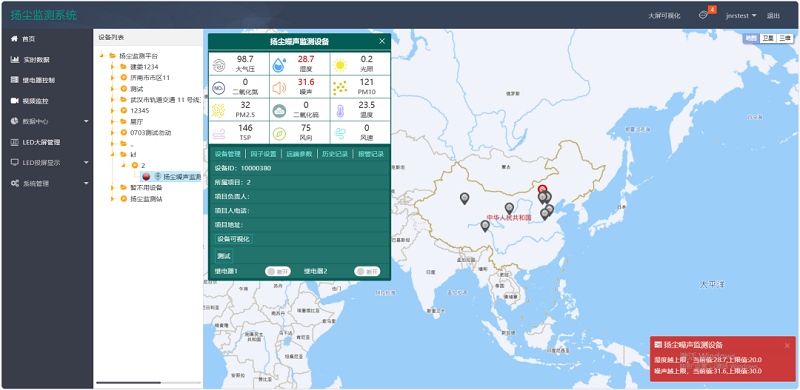 ① 多樣報警:在現場環境有監測要素超標時,揚塵云平臺會以頁面數據變紅、彈窗等形式提醒用戶及時關注環境變化。