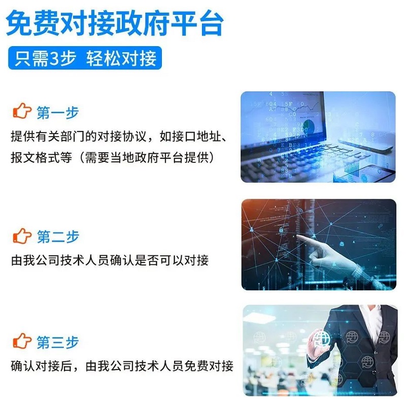 用戶只需要向山東仁科技術人員提供當地有關部門的對接協議,由公司技術人員確認后,便可以幫助用戶免費對接政府平臺,目前已成功對接的政府平臺數量達10000+。