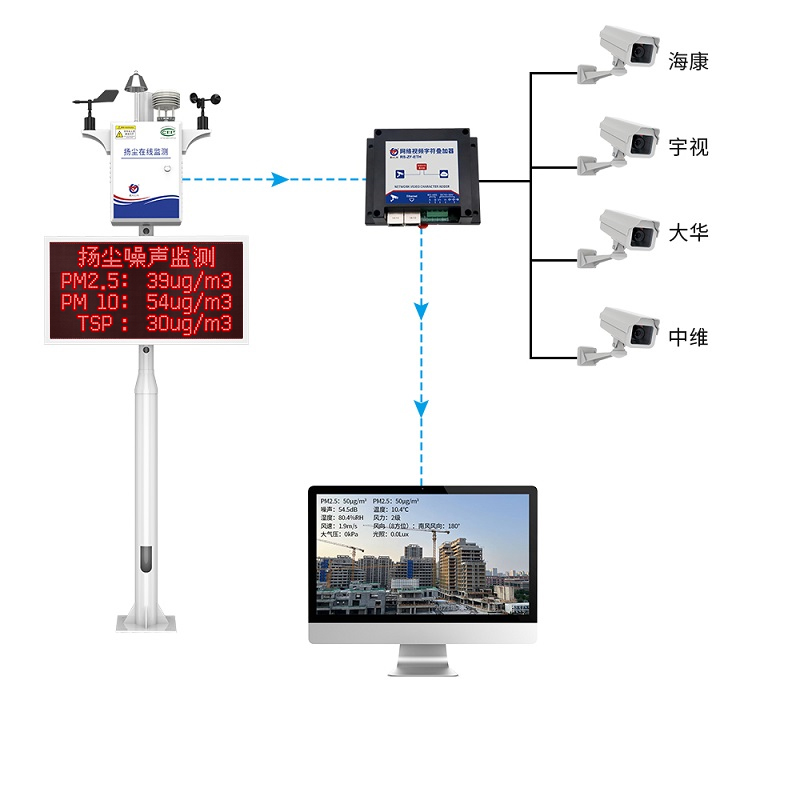 同時,可選配RS-485上行接口,搭配視頻字符疊加器將監測數據疊加至監控畫面中,為視頻監控提供數據支撐。