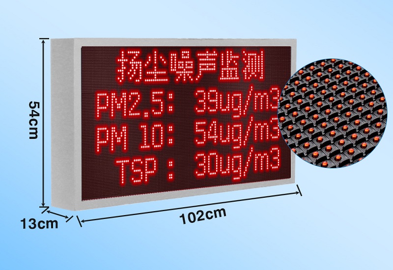 揚塵檢測儀監測到的數據不僅可以通過揚塵云平臺查看,還可以通過現場安裝的顯示屏進行實地查看。山東仁科揚塵檢測儀采用的顯示屏均由上市公司強力巨彩/匡通定制生產,加入了納米涂層技術,具有防水防塵防腐蝕的優勢,無懼霧炮水汽、暴雨沖刷,同時摒棄了傳統亞克力材質,相比多數同類產品使用的燈珠,山東仁科設備中的燈珠使用壽命更長,且無褪色、變暗隱患;雙開門屏框+抱箍固定設計,抗風能力提升,臺風天氣也能穩如磐石。
