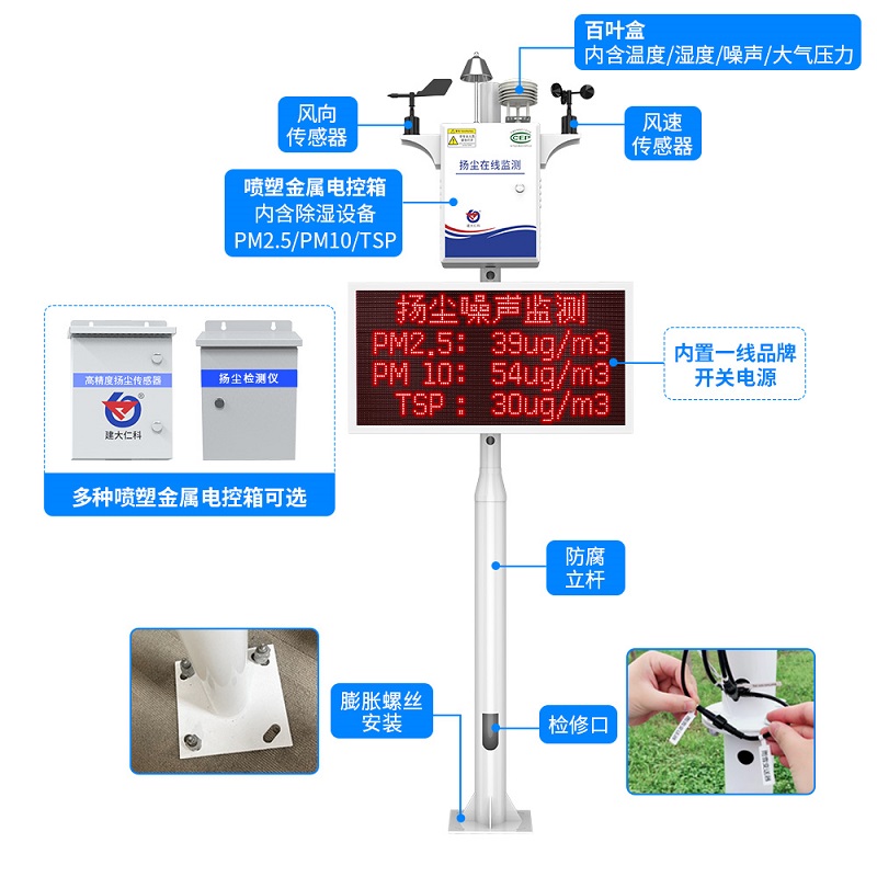 揚塵檢測儀采用“顆粒物+氣象+噪聲”的多參數融合設計,既滿足了環保部門對工地“揚塵、噪聲雙達標”的硬性要求,也為企業提供從污染監控到成因分析的完整決策鏈,真正實現“監測-分析-治理”的閉環管理。