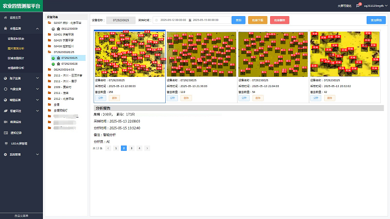 PS:色誘蟲情測報儀具備智能斷網續傳功能:當網絡信號中斷時,設備會自動將拍攝的蟲害圖像存儲在本地;待網絡恢復后,系統會立即將暫存的圖像數據上傳至農業四情測報平臺,確保監測數據的完整性和連續性。