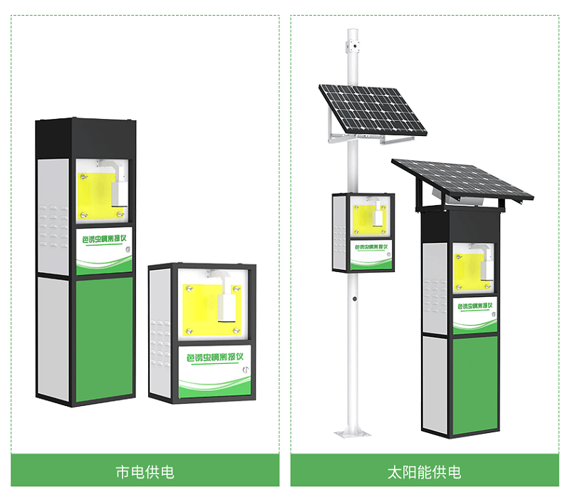 色誘蟲情測報儀支持市電和太陽能兩種供電方式。市電供電模式適合在電力基礎設施完善的區域使用,能夠提供穩定持續的電力保障。而太陽能供電模式則專門為電網覆蓋不足的偏遠地區設計,確保設備在無市電環境下也能正常工作。用戶可以根據實際安裝地點的電力條件,靈活選擇適合的供電方式。