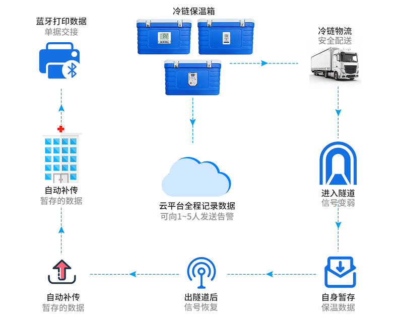 冷鏈運輸環節溫濕度監測解決方案涵蓋了冷鏈保溫箱、冷藏車及集裝箱海運的溫濕度監測系統,可確保運輸全程的環境參數精準可控,提升冷鏈運輸的安全性與可靠性,為溫敏貨物的全程品質保障提供專業技術支撐。