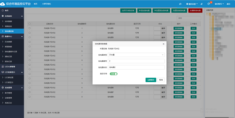 平臺具有智能控制功能。管理人員可通過平臺關聯繼電器(如語音報警器),當監測數據超限時,語音報警器可自動播報警示信息,提醒過往行人及車輛注意安全。管理人員可通過語音指令或遠程編輯報警信息,將其發送至指定報警器,從而實現實時預警,降低安全事故風險。