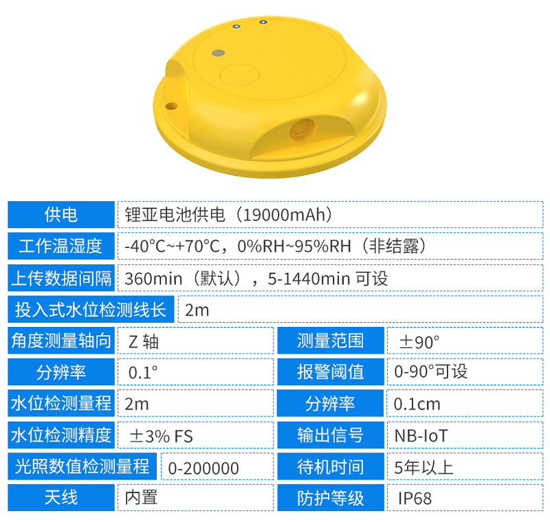 井蓋傾斜角度:井蓋傾斜狀態是其安全狀況的重要表征指標。智能井蓋傳感器能夠精準監測因外力沖擊、地下管網形變或安裝基礎松動等因素引起的井蓋角度變化,做到及時提醒管理部門,防范井蓋翻轉、墜落等事故發生。