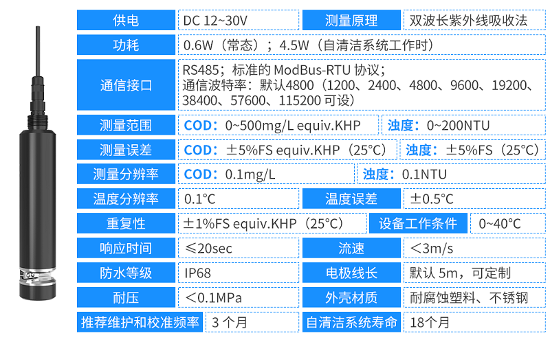注:以上水質變送器均具備自動溫度補償功能和IP68防水等級,自動溫度補償功能可根據環境溫度變化調整測量值,避免溫度波動帶來的誤差,IP68防水等級可保障其能夠在潮濕甚至水下環境中穩定運行,適用于河流、湖泊、污水處理廠等多種場合。