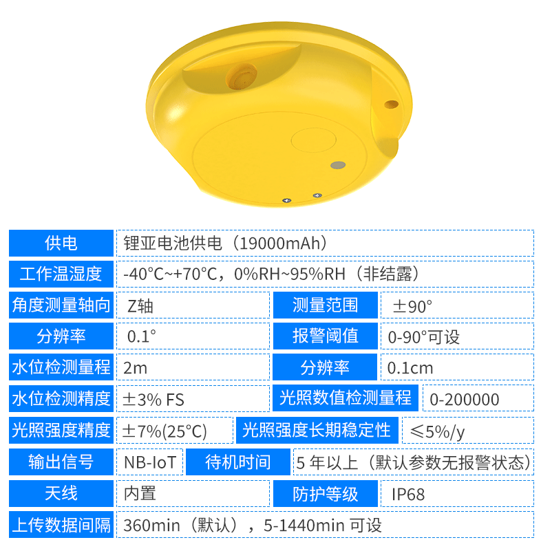 智能井蓋傳感器采用卡爾曼濾波算法,可精準監測井蓋傾斜角度、井下水位深度及破損狀況,為井蓋安全狀態提供多維度數據支持。設備內置超大容量電池,可持續工作長達5年,其IP68防護等級確保在惡劣環境下仍能穩定運行,有效保障監測工作的連續性。