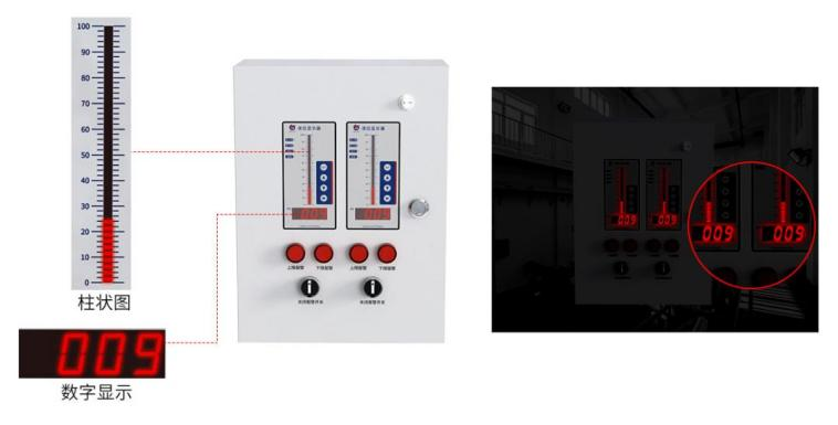 可以實時監測并顯示建筑物消防水池、消防水箱的當前水位高度,擁有電子光柱和高亮數碼管兩種顯示方式,電子光柱模擬水位高度,顯示更直觀;高亮數碼管就算在黑暗環境也可看清。