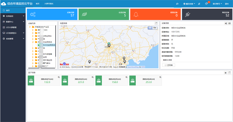 我司提供智能環境監控云平臺,可24小時在線監測查看水位數據,若有報警情況平臺數據會變紅并有報警聲音,同時可向多名責任人通過微信、短信、電話振鈴、郵件等遠程告警方式及時預警,還可記錄歷史數據和報警數據,擁有設備定位、視頻監控、賬號分級、大屏可視化等功能。