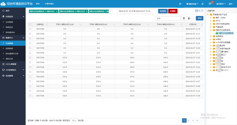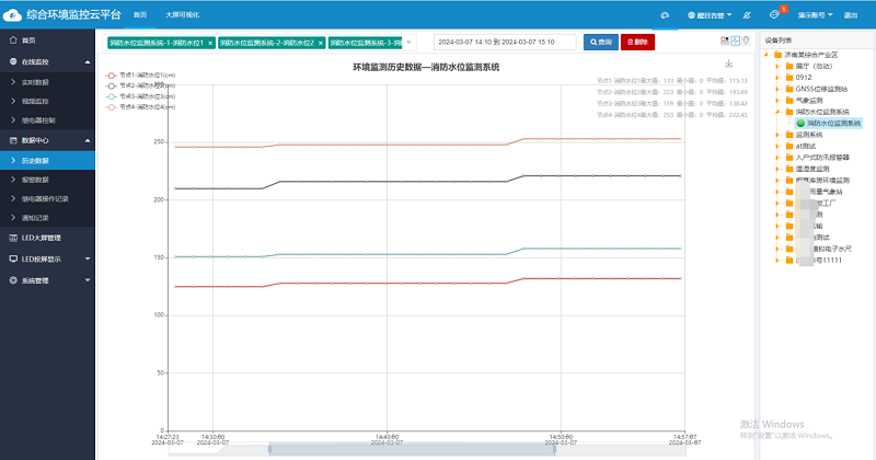 可滾動顯示消防水位水溫的監測數據,數據清晰、直觀,便于管理員進行系統查看。
